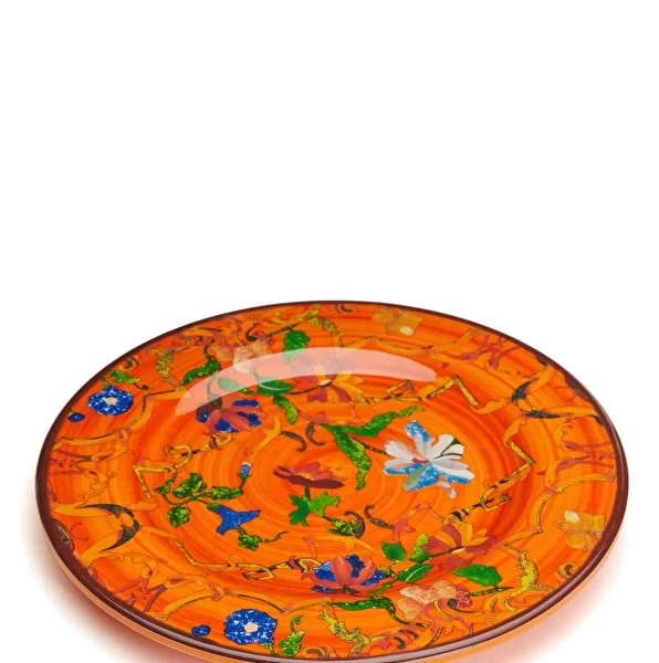 Pancale Turuncu Çiçek Desenli Yemek Tabağı